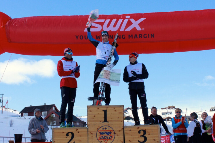 Gegen einen Großteil der Elite der norwegischen Skilangläufer zu bestehen, das war Toni Livers bereits im letzten Jahr beim Skarverennet gelungen. Dieses Mal setzte der Schweizer Skimarathon-Spezialist noch einen drauf. Kurz vor Mittag hatten sich die knapp 1.000 Läuferinnen und Läufer der Konkurrenzklasse auf die Verfolgung der vielen Tausend Hobbyläufer gemacht, die den ganzen Vormittag schon ohne Zeitnahme auf die 37 Kilometer Distanz von Finse nach Ustaoset gegangen waren. Wie gewohnt erhielten die Damen 15 Minuten Vorsprung und es wurde mit Spannung erwartet, ob es die Siegerin vor dem ersten Herren ins Ziel schafft. Bereits wenige hundert Meter nach dem Start ging es in den schwersten Anstieg und das Feld riss schnell auseinander. Toni Livers zeigte sich von Beginn an vorn und konnte sich bereits auf der ersten Hälfte des Rennens deutlich von seinen Konkurrenten absetzen. Knapp 1:30 Minuten betrug der Vorsprung zwischenzeitlich, am Ende blieben im Ziel 1:17 Minuten übrig. Eine Welt, in Anbetracht der Top-Läufer, die er an diesem Tag gegen sich hatte. Als Belohnung gab es dafür ein Küsschen von Freundin Seraina Boner, die ebenfalls nicht untätig gewesen war. Im Sprint um Platz zwei sicherte sich Petter Northugs Zimmerkollege Emil Iversen Rang zwei. Dritter wurde Simen Hegstad Krueger. Sjur Roethe, der am Anfang noch mit Toni Livers für das Tempo an der Spitze gesorgt hatte, erreichte zeitgleich mit Petter Northug auf Rang 37 das Ziel. Die beiden waren sogar langsamer unterwegs als die schnellste Dame.