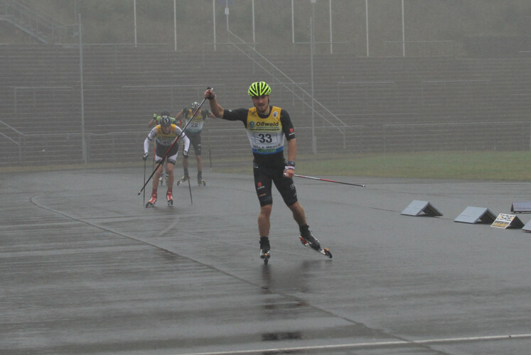 Das Rennen der Herren über die 1,5 Kilometer Distanz wurde am heutigen Tag bei teilweise strömendem Regen von zwei Läufern dominiert: Tim Tscharnke und Thomas Bing. Die beiden Thüringer hatten zunächst die Bestzeit (Tscharnke) und drittbeste Zeit (Bing) im Prolog hingelegt. Dann wechselten sie sich in den drei Finalläufen jeweils an Position eins ab. Diese wurden nämlich nicht, wie im Weltcup üblich, im k.o.-System ausgetragen, sondern mit einem Auf- und Abstiegssystem. Alle Teilnehmer am Prolog kamen eine Runde weiter und wurden in der Reihenfolge ihrer Platzierung Vierer-Heats zugewiesen. In den Finalläufen stieg dann immer der Erste einen Heat auf, der Letzte einen Heat ab. Im letzten Lauf, der über die Titelvergabe entschied, konnte sich Bing klar von seinen Konkurrenten absetzen und bereits einige Meter vor der Ziellinie über den Titelgewinn jubeln. Dahinter erkämpfte sich Tscharnke Platz zwei und feierte nach Problemen in der vergangenen Saison ein kleines Comeback. Sebastian Eisenlauer lief nach Platz zwei im Prolog in jedem Lauf auf Rang drei und sicherte sich damit die Bronzemedaille. Vierter wurde Valentin Mättig, der vom zweiten Heat aufgestiegen war, Fünfter der Titelverteidiger Markus Weeger. Die russischen Top-Sprinter Anton Gafarov und Stanislav Volzhentsev mussten sich mit den Plätzen sechs und neun begnügen, Sergej Ustiugov musste nach einem Sturz ebenso wie Evgeni Belov verletzt aufgeben.