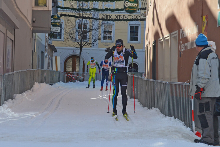 Mit dem Blick aus dem Fenster am Sonntag Morgen stellte ich erfreulicherweise keinen Neuschnee fest. Somit ging ich sehr beruhigt zum Frühstück und konnte schon in Gedanken den Startablauf durchgehen. Angekommen im Startbereich legte ich erst einmal die Skier in meinen Startblock. Über die Berge kündigte sich schon ein traumhafter Tag an. Ähnlich wie das Wetter erwischte ich ebenfalls einen sehr guten Tag. Mit der Auswahl der Skier und des Rennwachses griff ich voll ins Schwarze. Ich hatte mir vorgenommen vom Start weg mit offenem Visier zu laufen. Mein Ziel war es, mich voll auszulasten, aber trotzdem Spaß zu haben. Das ist kein Gegensatz. Mit dem Startschuss ging es ein paar hundert Meter abschüssig, ehe man über eine Schleife noch einmal zum Startbereich kam. Es befanden sich überraschend viele Zuschauer am Start, welche uns hier noch einmal zu Gesicht bekamen, ehe der wilde Ritt Richtung Lienz losging. Im ersten Drittel der Strecke suchte ich immer Anschluss an eine größere Gruppe die ungefähr hundert Meter vor mir war. Trotz großer Anstrengungen schaffte ich es nicht diesen herzustellen. Zwischen Abfaltersbach und Mittewald fiel ich dann in ein Loch. Auch der Ski, der im oberen Bereich noch herausragend war, fühlte sich unmittelbar neben der Drau nicht mehr so gut an. Aufgrund meines Durchhängers schaffte es eine nachfolgende Gruppe auf mich aufzufahren. Als mich diese überholte, ergriff ich gleich die Initiative, ich musste da einfach dranbleiben, koste es was es wolle. Dort hatte man die veränderten Streckenbedingungen auch schon bemerkt, es wurde nur noch außerhalb der Klassikspur geschoben. Die zweite Hälfte des Rennens war zwar vom Streckenprofil am leichtesten, allerdings gab es durch das leicht abfallende Gelände keine Zeit zum Verschnaufen, man musste immer draufhalten um den Anschluss nicht zu verlieren. So kam es dann ungefähr 10 Kilometer vor dem Ziel zum Abriss der Gruppe. Ich versuchte noch gegen zu halten, aber drei bis vier Kilometer vor dem Ziel war dann endgültig der Ofen aus. Hier befand ich mich schon am Ortsrand von Lienz und versuchte Fixpunkte auszumachen, wann es denn endlich in Richtung Stadtzentrum ging. Die letzten beiden Wiesenschleifen fühlten sich unendlich an. Mit der Überquerung der Hauptstraße erreichte ich endlich das Stadtzentrum. Von hier aus ging es ungefähr einen Kilometer durch enge Gassen zum Hauptplatz. Ich genoss noch einmal die letzten Meter bis zur Überquerung der Ziellinie.