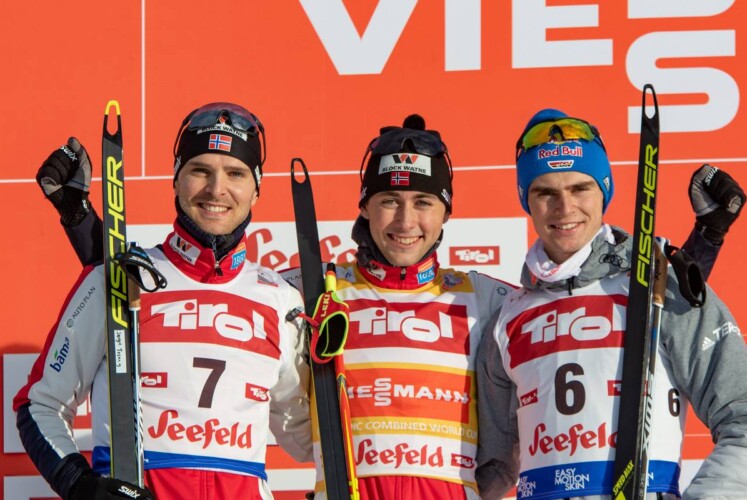 Da beim Triple allerdings noch die Rückstände vom Vortag mit in die Wertung fließen, ging Jarl Riiber mit genau einer Minute Vorsprung vor Jens Oftebro in die Loipe. Gefolgt von Eric Frenzel und Akito Watabe, den beiden bisherigen Siegern des Seefeld Triples. Vinzenz Geiger erwischte dagegen keinen guten Sprung. Mit 94,5 Metern startete er hinter Espen Bjoernstad als Sechster, 1:36 Minuten hinter Riiber. Sechs Sekunden nach ihm startete Joergen Graabak ins Rennen. Für Spannung war also gesorgt.