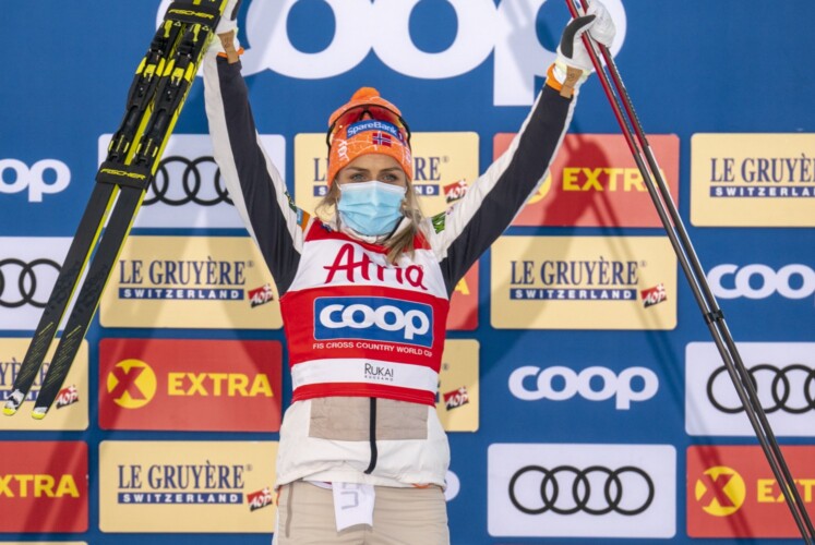 Normalerweise war Therese Johaug immer die Athletin, die von Anfang bis Ende Vollgas gab und alle Bestzeiten setzte. Seit es Frida Karlsson im Weltcup gibt, ist das nicht mehr so. Die junge Schwedin startete wieder mit einem enorm hohen Tempo in den Wettkampf, das sie aber nach dem ersten 700 Meter langen Anstieg nicht ganz durchhalten konnte. Nach der ersten Runde setzte Therese Johaug die Bestzeit und gab die Führung bis zum Rennende nicht mehr her. Frida Karlsson konnte sich mit 21 Sekunden Rückstand auf Platz zwei behaupten, fünf Sekunden vor ihrer Teamkollegin Ebba Andersson. „Es war ein hartes Rennen, aber das war mir bewusst. Ich hoffe, dass ich weiter gut unterwegs sein werde. Es ist schön, mit einem ersten Rang in die Saison zu starten“, meinte Therese Johaug im Siegerinterview. „Ebba ist 30 Sekunden vor mir gestartet und das war sehr gut für mich, weil ich sie immer sehen konnte. Ich habe ein gutes Rennen gemacht und bin glücklich, wieder im Weltcup zu laufen. Es ist schön, dass wir diese Wettkämpfe durchführen können.“