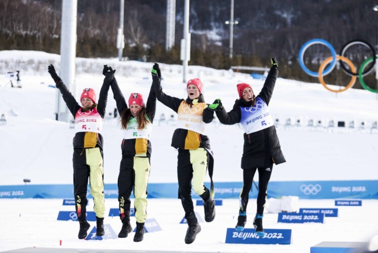 Das deutsche Staffel-Quartett Katherine Sauerbrey, Katharina Hennig, Victoria Carl und Sofie Krehl haben die große Sensation nur knapp verpasst. Dennoch ist die Silbermedaille hinter Russland ein großer Triumph für das junge Team von Peter Schlickenrieder. Es ist die erste deutsche Staffel Medaille seit Sochi 2014…