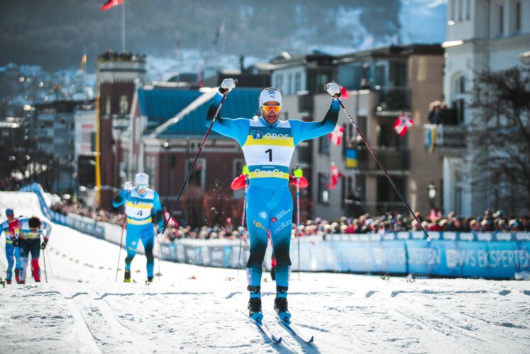Neben blau-gelber Bandenwerbung, gehissten Fahnen und blau-gelben Streifen auf den Startnummern waren relativ wenig ukrainische Farben zu sehen. Einzelne ukrainische Fähnchen im Publikum gingen eher unter, bei den Athleten zeigten nur Julie Myhre und Maiken Caspersen Falla mit blau-gelber Armbinde Flagge. Im Finale der Damen dominierte jedoch blau-gelb – die drei Schwedinnen bekamen allerdings große Konkurrenz von Maiken Caspersen Falla, die in Drammen schon fünfmal gewonnen hatte. Seit letztem Winter beschäftigen die Norwegerin zwar Atemprobleme sowie Magenprobleme in Davos und Peking, in Drammen war davon aber nichts mehr zu spüren. Auch wenn lange Zeit Jonna Sundling das Tempo bestimmte und dafür sorgte, dass sie, Falla und Lampic sich absetzten, kam im Anstieg wieder im Viertel- und Halbfinale wieder die Zeit der Norwegerin, die sich mit dem stärksten Finish den Sieg holte und laut jubelte. Zum sechsten Mal gewann sie das einzige Weltcuprennen, das in klassischer Technik zu Ende geht und nicht im Doppelstockschub. Die Zweitplatzierte Jonna Sundling freute sich aber sichtlich über den Erfolg der Norwegerin, die für den ersten nicht-schwedischen Sieg in diesem Winter sorgte. „Ich liebe es hier in Drammen. Schön, wieder hier zu sein. Es ist eine tolle Athmosphäre und ein toller Tag. Es ist eine ziemlich harte Strecke“, sagte die noch schnaufende Falla, obwohl die Strecke seit der letzten Austragung leicht verändert wurde: Neben einer verbreiterten Startpassage mit sechs Spuren fehlen nun erstmals die letzten besonders steilen Meter vor der Ziellinie auf den Stufen der Kathedrale. „Ich habe diese Saison viele Rennen im TV verfolgt, aber es ist schön, die Saison so zu beenden“, so Falla, die aber sicher auch noch den Sprint in Falun mitnehmen wird. Über den Podestplatz trotz Formschwäche in den letzten Rennen freute sich Anamarija Lampic. Maja Dahlqvist konnte sich im Endspurt immerhin noch Platz vier sichern vor Anna Dyvik und Nadine Fähndrich. Die Schweizerin versuchte als einzige Athletin, sich im ersten Anstieg in einer eigenen Spur nach vorn zu arbeiten, was ihr in ihrer schwächeren Technik jedoch nicht gelang. Enttäuscht reist Johanna Hagström aus Drammen ab: Zwar war die Schwedin die Schnellste im Prolog, stürzte dann aber ohne gegnerische Einwirkung in der Abfahrt im Viertelfinale. Nach dem Prolog hatte sie noch gesagt, sie wolle es diesmal taktisch klüger angehen als bisher in Drammen und nicht zu vorsichtig.
