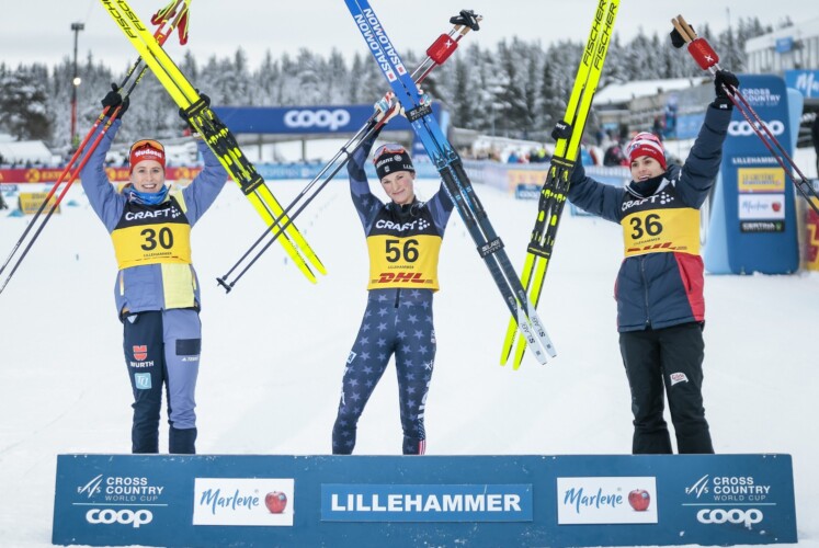 Einzelstart in der freien Technik – das ist normalerweise nicht das Lieblingsrennen von Katharina Hennig, die als Klassikspezialistin gilt. Heute lief es aber überraschend gut in der Skatingtechnik, obwohl auf den leichten Biathlonstrecken von Lillehammer Victoria Carl stärker eingeschätzt worden war. Zu Rennbeginn war auch die Thüringerin die schnellere Deutsche, dann erhöhte Hennig aber in Runde zwei das Tempo und schob sich an den favorisierten Schwedinnen vorbei. Im Leader’s Chair im Ziel war sie sichtlich unruhig, als ihr klar wurde, was sie für eine großartige Zeit gelaufen war. Mit der drittletzten Startnummer kam aber noch Jessie Diggins, die immer nur knapp hinter der Deutschen lag. Bei Kilometer 8,2 lag die Deutsche noch eine Sekunde vorn, aber angespornt von den Zwischenzeiten gab die Amerikanerin noch einmal Gas und holte innerhalb von 700 Metern drei Sekunden heraus. Im Ziel lag Diggins dann 3,8 Sekunden vorne. „Ich wusste, dass es eng wird auf den letzten Metern. Ich musste alles geben. Normalerweise mag ich das nicht, die Zeit gesagt zu bekommen. Ich konzentriere mich lieber auf mein eigenes Rennen. Aber dann habe ich doch zugehört und es hat mich sehr unruhig gemacht, dass ich gewinnen kann“, sagte Jessie Diggins im FIS-Interview.