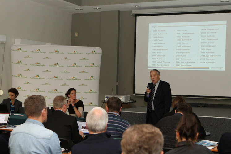Den traditionellen Auftakt des FIS-Tages beim Forum Nordicum, der Versammlung der nordischen Ski-Journalisten, in Szklarska Poreba (Polen) bestritt der Präsident des internationalen Skiverbandes (FIS), Gian Franco Kasper. In seiner unnachahmlich Art mit trockenem Humor berichtete Kasper über die Entwicklungen in der Planung kommender Großereignisse, an denen er als IOC-Mitglied beteiligt ist. So gab er zu den Olympischen Spielen 2018 in Pyeongchang zu Protokoll: „Korea hat die Möglichkeit, auf bescheidener Ebene Olympische Spiele auszurichten.“ Ganz anders sehen die Planungen für Peking 2022 aus. Die Wasserversorgung ist dort ein Problem, aber seitens des Organisationskomitees erhielt der FIS-Präsident die Auskunft: „Wenn sie Schweizer Wasser wollen, bauen wir eben eine Pipeline von dort nach Peking.“ Unerfreuliches wusste er dagegen vom Wettkampfprogramm bei Olympischen Spielen zu berichten. Aus Kostengründen könnten in Zukunft neben einem Skisprungwettbewerb und der Alpinen Abfahrt sowie dem Super-G die Langdistanzen im Skilanglauf gestrichen werden. „Aber genau sie sind die Wiege Olympias, diese gibt es seit vielen Jahrzehnten“, betonte Kasper. Er betonte aber auch, dass es momentan noch keine konkreten Pläne für Streichungen gebe.