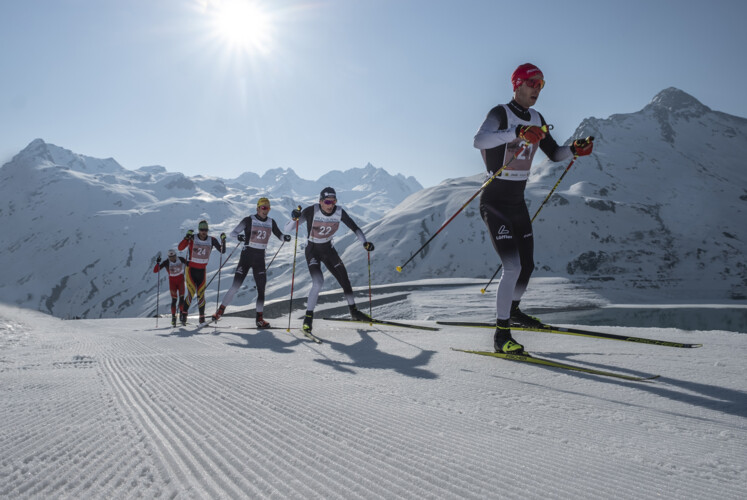 Höhepunkt am 23. März: Cross Country Climb auf die Bielerhöhe, steile Anstiege und atemberaubende Alpenlandschaft.