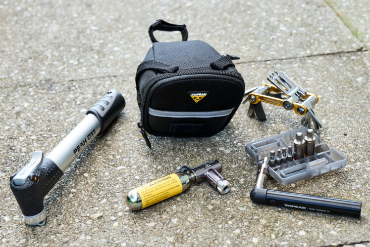 Unterwegs auf einer längeren Trainingsrunde kann viel passieren. Deshalb solltest du zumindest für die meisten Ernstfälle gerüstet sein. Es gilt allerdings auch Gewicht zu sparen, schließlich will man nicht fünf Kilo an Werkzeug mitschleppen. Eine gute Begrenzung stellt eine kompakte Satteltasche dar, die man unter dem Sattel und an der Sattelstütze befestigen kann. Windschlüpfrig geformt und dennoch mit ausreichend Platz für die wichtigsten Tools ausgestattet ist die Topeak Aero Wedge Pack Strap Medium (empf. VK-Preis: 22,95 Euro). Schneller als ihr den Namen gelesen habt, ist sie ohne Werkzeug montiert und nimmt für das wohl häufigste Problem „Plattfuß“ einen Ersatzschlauch und zwei Reifenheber aus Plastik (schonen die Felge) auf. Um möglichst schnell wieder auf dem Rad zu sitzen, lohnt sich die Anschaffung des Topeak Air Booster (empf. VK-Preis: 19,95 Euro), mit dessen Hilfe ihr den Inhalt einer CO2-Kartusche in den neuen Schlauch füllen könnt. Das dauert nur wenige Sekunden und schont die Arme. Wer dagegen auf Nummer sicher gehen will, dass sein Schlauch auch tatsächlich voll wird, der nimmt die Topeak Peak DX (empf. VK-Preis: 22,95) mit auf Tour. Sechs bar schafft die „Kleine“, die man ganz einfach unter dem Flaschenhalter montieren kann. Der ergonomische T-Griff ermöglicht einen kräfteschonenden Pumpvorgang.