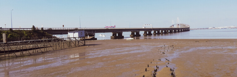 Auf Skirollern durch Europa: Schrägseilbrücke über die Loire, Saint-Nazaire © Stefan Prinz