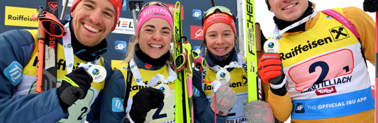 Bildergalerie Biathlon IBU Cup Obertilliach (AUT) David Zobel (GER), Marion Wiesensarter (GER), Sophia Schneider (GER), Lucas Fratzscher (GER), (l-r) © Deubert/IBU 1 2 3 4 5 6 7 8 9 10 11 12 13 14 15 16 17 18 19 20 21 22 23 24 25 26 27 © Bilder 1 - 27: Deubert/IBU;