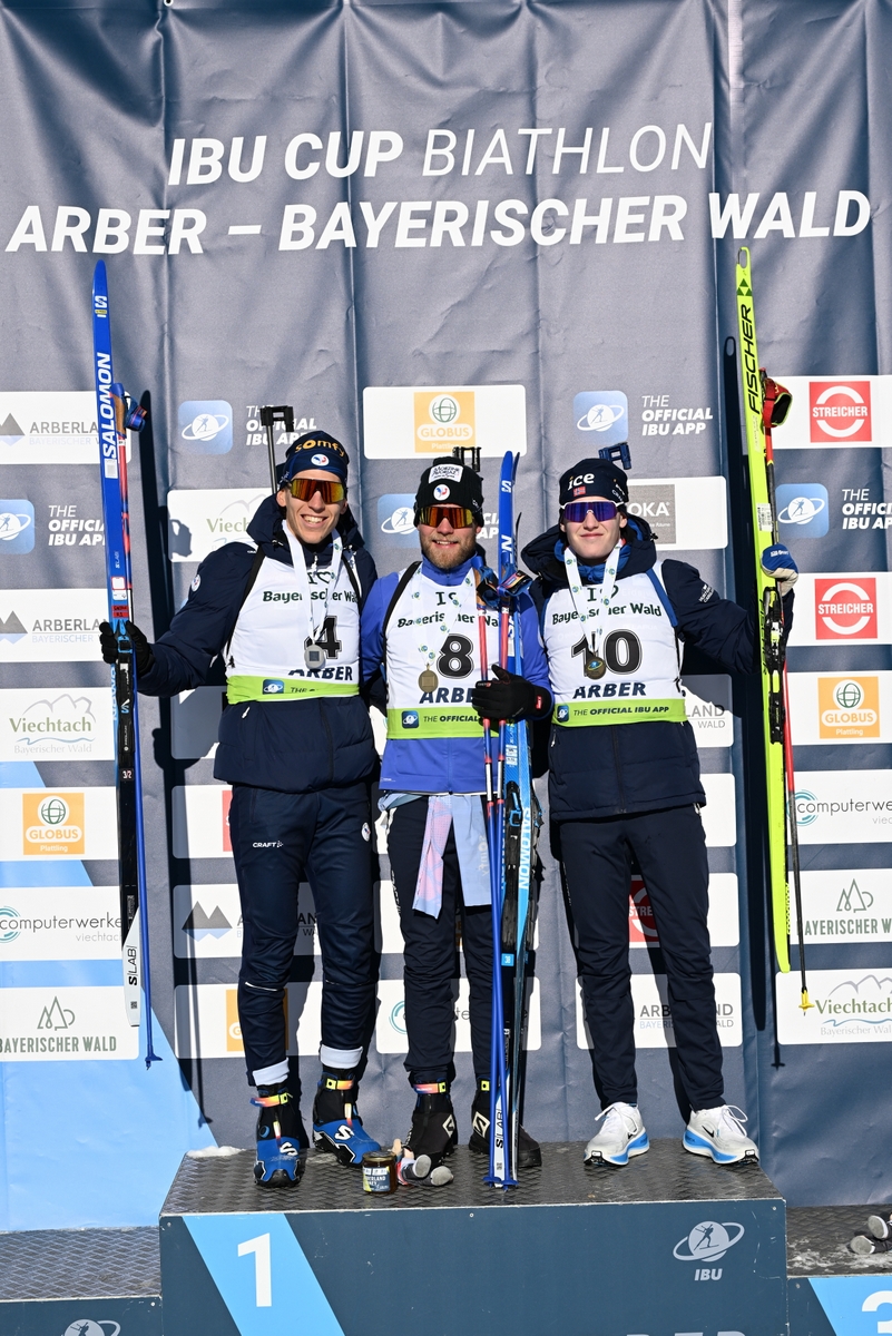 Gaetan Paturel (FRA), Antonin Guigonnat (FRA), Kasper Kalkenberg (NOR), (l-r) © Deubert/IBU