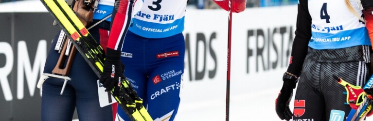 Ida Lien, NOR giving Camille Bened, FRA © Danielsson/IBU