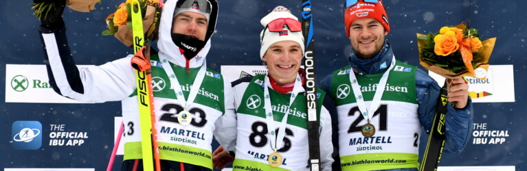Mats Oeverby (NOR), Isak Frey (NOR), Danilo Riethmueller (GER), (l-r) © Deubert/IBU