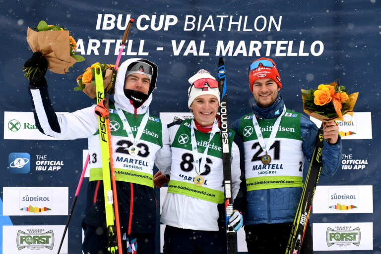 Bildergalerie Biathlon IBU Cup, Martell (ITA) Mats Oeverby (NOR), Isak Frey (NOR), Danilo Riethmueller (GER), (l-r) © Deubert/IBU 1 2 3 4 5 6 7 8 9 10 11 12 13 14 15 16 17 18 19 20 21 22 23 24 25 26 27 28 29 30 31 32 © Bilder 1 - 32: Deubert/IBU;