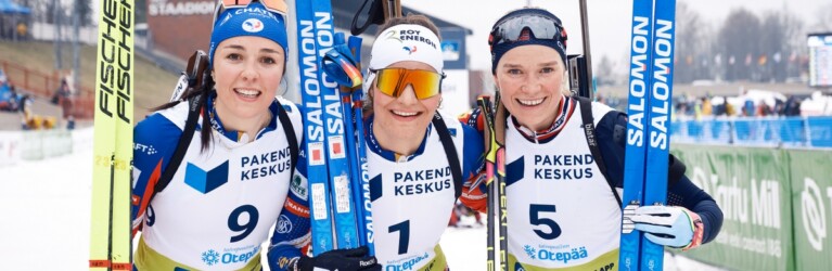BENED Camille (FRA); GUIGONNAT Gilonne (FRA); ARNEKLEIV Juni (NOR); (l-r) © Osula/IBU