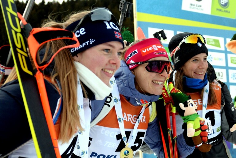 Bildergalerie Biathlon IBU Cup, Pokljuka (SLO) Karoline Erdal (NOR), Hanna Kebinger (GER), Michela Carrara (ITA), (l-r) © Deubert/IBU 1 2 3 4 5 6 7 8 9 10 11 12 13 14 15 16 17 18 © Bilder 1 - 18: Deubert/IBU;
