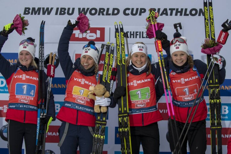 Marte Olsbu Roeiseland (NOR), Tiril Eckhoff (NOR), Ingrid Landmark Tandrevold (NOR), Karoline Offigstad Knotten (NOR) © Nico Manzoni/NordicFocus
