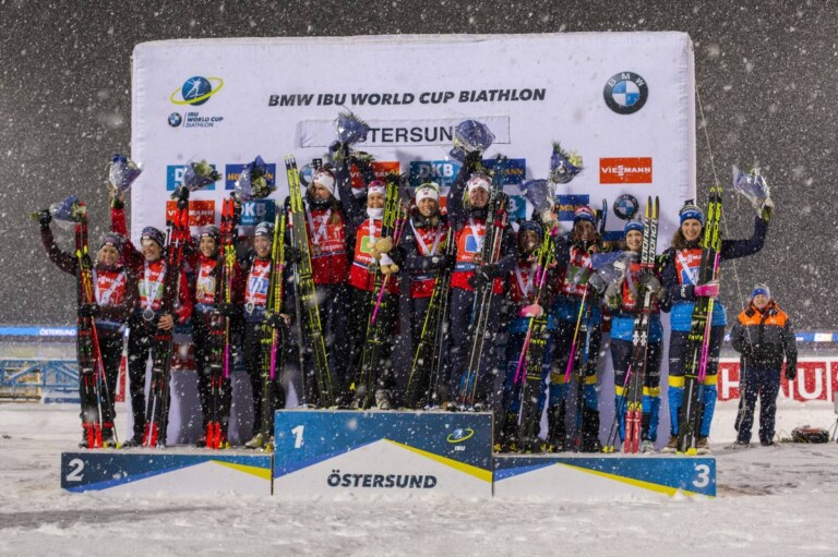 Elisa Gasparin (SUI), Selina Gasparin (SUI), Aita Gasparin (SUI), Lena Haecki (SUI), Karoline Offigstad Knotten (NOR), Ingrid Landmark Tandrevold (NOR), Tiril Eckhoff (NOR), Marte Olsbu Roeiseland (NOR), Linn Persson (SWE), Elvira Oeberg (SWE), Mona Brorsson (SWE), Hanna Oeberg (SWE) © Nico Manzoni/NordicFocus