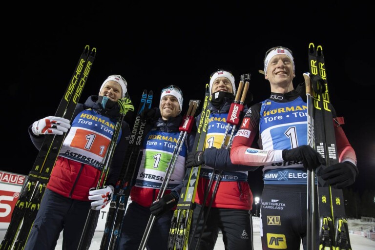 Johannes Dale (NOR), Erlend Bjoentegaard (NOR), Tarjei Boe (NOR), Johannes Thingnes Boe (NOR), (l-r) © Manzoni/NordicFocus