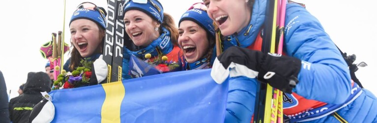 Linn Persson (SWE), Mona Brorsson (SWE), Anna Magnusson (SWE), Hanna Oeberg (SWE) - Bildergalerie Biathlon IBU World Championships, Oestersund (SWE), Frauen 4x6 km Staffel - xc-ski.de Langlauf