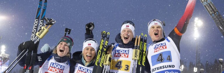Marte Olsbu Roeiseland (NOR), Tiril Eckhoff (NOR), Johannes Thingnes Boe (NOR), Vetle Sjaastad Christiansen (NOR), (l-r) © Manzoni/NordicFocus