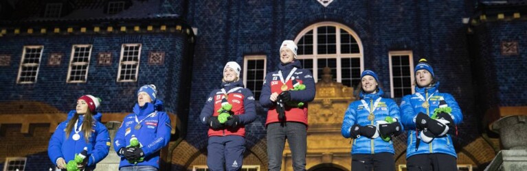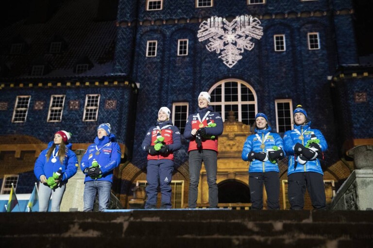 Dorothea Wierer (ITA), Lukas Hofer (ITA), Marte Olsbu Roeiseland (NOR), Johannes Thingnes Boe (NOR), Hanna Oeberg (SWE), Sebastian Samuelsson (SWE) © Manzoni/NordicFocus