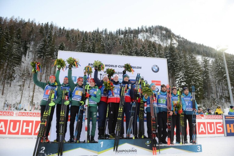 Lars Helge Birkeland (NOR), Vetle Sjaastad Christiansen (NOR), Tarjei Boe (NOR), Johannes Thingnes Boe (NOR), Emilien Jacquelin (FRA), Martin Fourcade (FRA), Quentin Fillon Maillet (FRA), Simon Desthieux (FRA), Roman Rees (GER), Johannes Kuehn (GER), Arnd Peiffer (GER), Benedikt Doll (GER) © Tumashov/NordicFocus