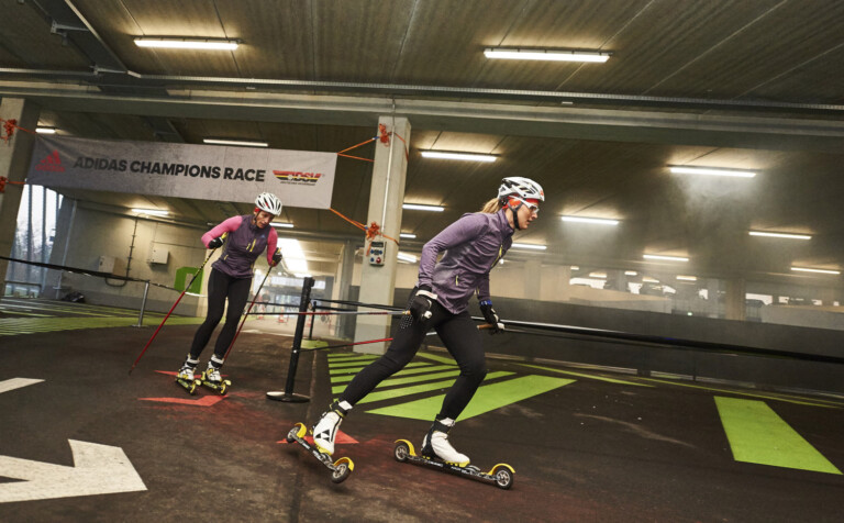 Im Vorfeld der DSV-Einkleidung in Herzogenaurach wurde im Parkhaus von Sponsor adidas ein Skiroller-Teamsprint ausgetragen. Mit dabei waren mehrere Top-Athleten aus dem Skilanglauf, Biathlon und der Nordischen Kombination.