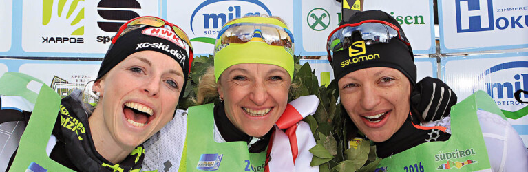Bildergalerie Gsiesertal Lauf 2016 Das Podium der Damen über 42 Kilometer Skating beim Gsiesertal Lauf: v.l. Jessica Müller, Valentina Shevchenko und Natalia Zernova © Newspower Canon 1 2 3 4 5 6 7 8 9 10 11 12 13 14 15 16 © Bilder 1 - 16: Newspower Canon;