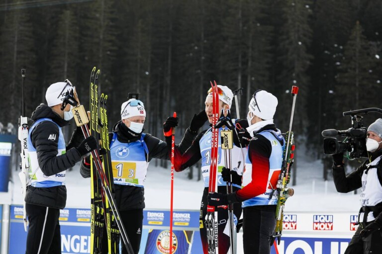 Vetle Sjaastad Christiansen (NOR), Johannes Thingnes Boe (NOR), Tarjei Boe (NOR), Sturla Holm Laegreid (NOR), (l-r) © Manzoni/NordicFocus