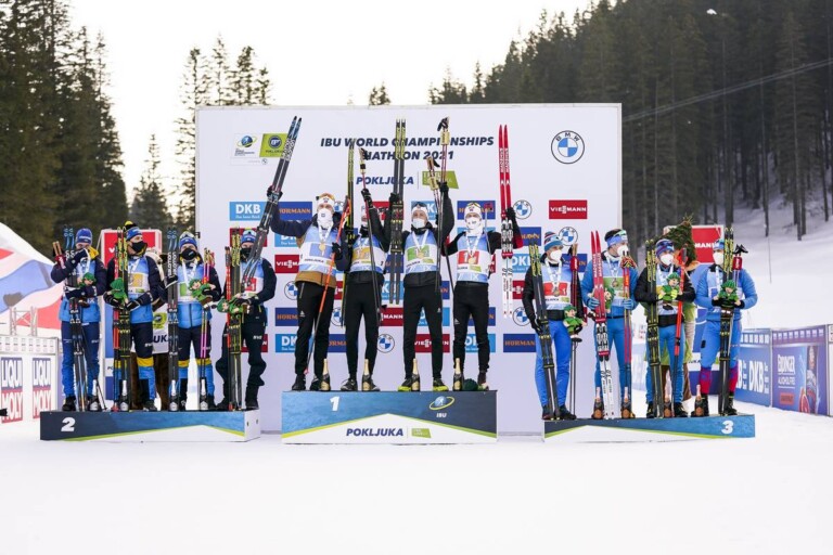 Peppe Femling (SWE), Jesper Nelin (SWE), Martin Ponsiluoma (SWE), Sebastian Samuelsson (SWE), Sturla Holm Laegreid (NOR), Tarjei Boe (NOR), Johannes Thingnes Boe (NOR), Vetle Sjaastad Christiansen (NOR), Said Karimulla Khalili (RBU), Matvey Eliseev (RBU), Alexander Loginov (RBU), Eduard Latypov (RBU), (l-r) © Thibaut/NordicFocus