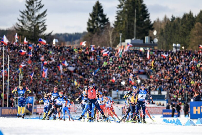 Elvira Oeberg (SWE), Julia Simon (FRA), Justine Braisaz-Bouchet (FRA), (l-r) © Manzoni/NordicFocus
