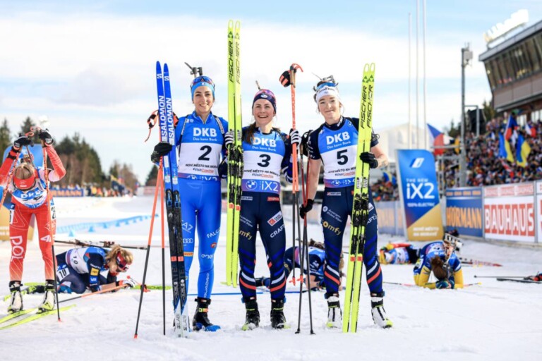 Lisa Vittozzi (ITA), Justine Braisaz-Bouchet (FRA), Lou Jeanmonnot (FRA), (l-r) © Manzoni/NordicFocus