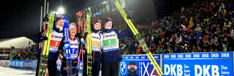 Tarjei Boe (NOR), Ingrid Landmark Tandrevold (NOR), Karoline Offigstad Knotten (NOR), Johannes Thingnes Boe (NOR), (l-r) © Manzoni/NordicFocus