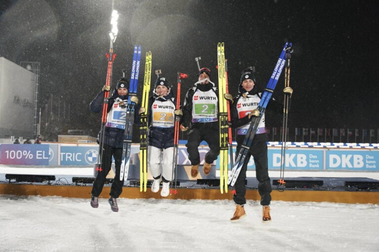 Julia Simon (FRA), Justine Braisaz-Bouchet (FRA), Quentin Fillon Maillet (FRA), Eric Perrot (FRA), (l-r) © Thibaut/NordicFocus