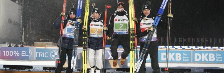 Julia Simon (FRA), Justine Braisaz-Bouchet (FRA), Quentin Fillon Maillet (FRA), Eric Perrot (FRA), (l-r) © Thibaut/NordicFocus