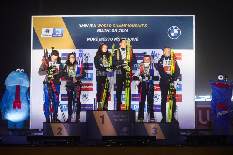 Tommaso Giacomel (ITA), Lisa Vittozzi (ITA), Quentin Fillon Maillet (FRA), Lou Jeanmonnot (FRA), Ingrid Landmark Tandrevold (NOR), Johannes Thingnes Boe (NOR), (l-r) © Thibaut/NordicFocus