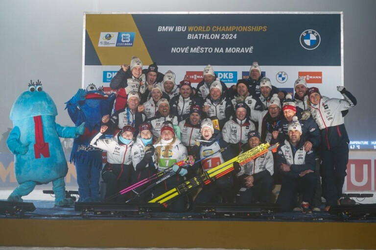 Ingrid Landmark Tandrevold (NOR), Johannes Thingnes Boe (NOR) and Norway team, (l-r) © Thibaut/NordicFocus