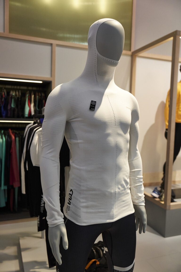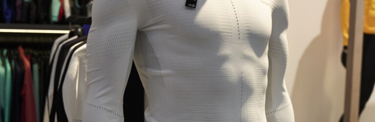 Ein weiterer ISPO Award Gold Gewinner ist der CTM Baselayer von Craft. Das innovative daran ist die Herstellungsmethode als nahtlose 3D-Wirkware. Klingt komisch, hat aber handfeste Vorteile. Materialstärke und Strickmuster können trotz nahtloser Verarbeitung an beliebigen Stellen variieren und damit dort wärmen oder kühlen wo es jeweils notwendig ist. Außerdem lassen sich komplette Teile vom Kunden selbst wegschneiden, ohne dass das Kleidungsstück ausfranst. Kürzere Ärmel oder Löcher in der Kapuze? Kein Problem! © Felgenhauer / xc-ski.de
