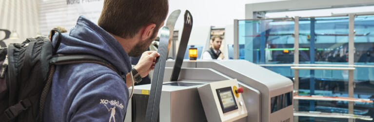 Bei Reichmann gab es eine Schleifmaschine zu sehen, die eigentlich gar nicht mehr schleift. Per Laser wird hier die Struktur in den Belag geschnitten, was der Fantasie freien Lauf lässt. Theoretisch lässt sich auch das Firmenlogo auf den Belag zaubern. Ob das schneller macht ist fraglich, aber bei ernsthaft entwickelten Schliffen dürften sich nun ganz neue Möglichkeiten ergeben. © Felgenhauer / xc-ski.de