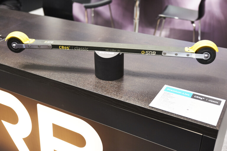 Ein neuer, alter Bekannter kommt diesen Sommer bei SRB zum Einsatz. Der CR05 classic mit Carbon-Holzkern-Holm kommt überarbeitet zurück. Jeweils drei Befestigungspunkte an den Gabeln sorgen für stabilen Halt, der Holm für gute Dämpfung, gerade in Kombination mit der neuen Gummi-Mischung auf den Rollen mit mehr Grip und weniger Verschleiß. © Felgenhauer / xc-ski.de
