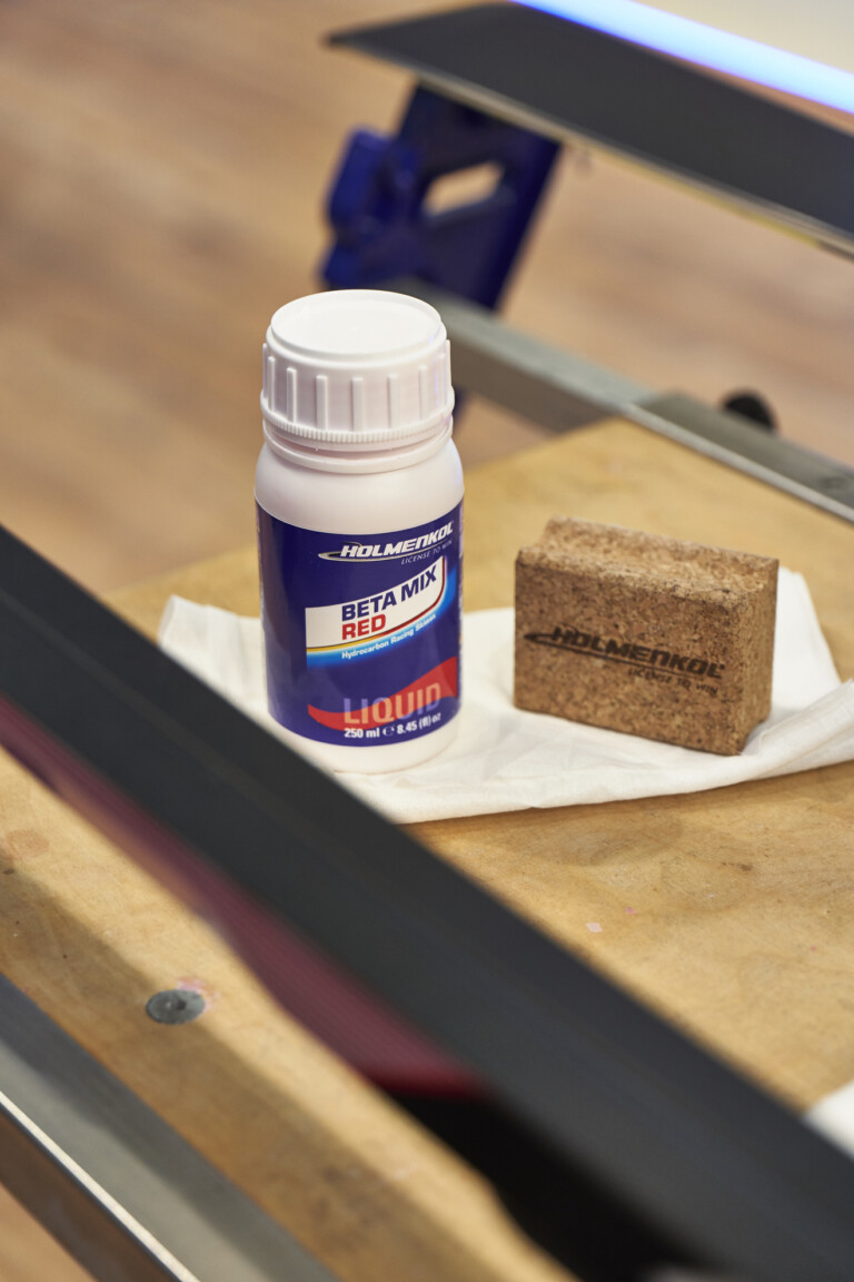 Ein Klassiker wird verflüssigt. Das von Holmenkol gerne als Topseller bezeichnete Beta Mix Red kommt in der nächsten Saison als Flüssigwachs auf den Markt. Mit dem Lappen auftragen, trocknen lassen und leicht einkorken - mehr ist für das Basis- und Trainingswachs nicht nötig. Bei Schneetemperaturen zwischen -4 und -14 Grad sind die kälteren Tage locker abgedeckt. © Felgenhauer / xc-ski.de