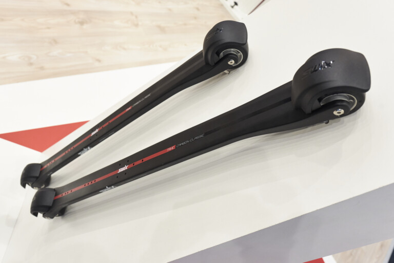 Der Carbon-Skating Roller von Swix ist bereits bekannt, nun kommt auch die Klassik-Variante. Verwendung findet hier die gleiche Verarbeitungstechnologie wie bei den Topstöcken der Norweger, daher auch die Bezeichnung Triac. Die Schwingen sind komplett aus Carbon, nur die Achsaufnahmen sind aus Alu, aber direkt in den Kunststoff integriert und abschließend plan gedreht. © Felgenhauer / xc-ski.de