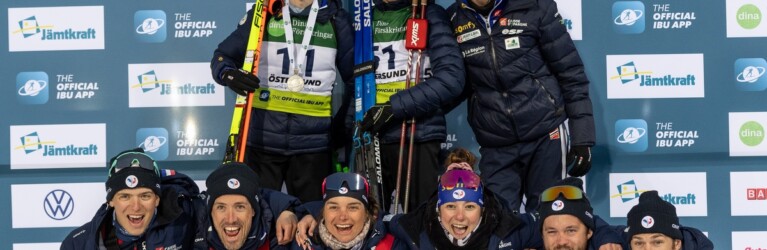 Bildergalerie Jugend und Junioren Weltmeisterschaft Biathlon Oestersund (SWE) Sprint Jugend und Junioren Team France celebrating after medal for Leo Carlier, FRA © Danielsson/IBU 1 2 3 4 5 6 7 8 9 10 11 12 13 14 15 16 17 18 19 20 21 22 23 24 25 26 27 © Bilder 1 - 27: Danielsson/IBU;