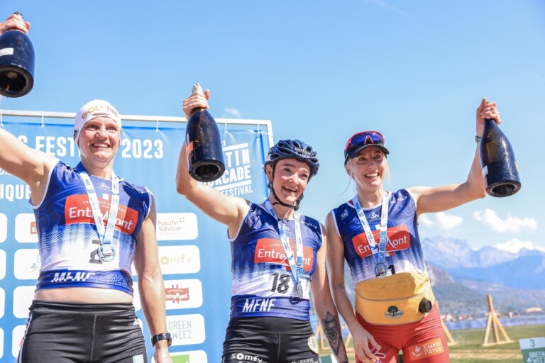 Victoria Carl (GER), Lou Jeanmonnot (FRA), Teresa Stadlober (AUT), (l-r) - Bildergalerie Martin Fourcade Nordic Festival 2023 - xc-ski.de Langlauf