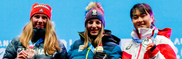 Bildergalerie Olympische Jugendspiele Lausanne (SUI) Nordische Kombination Jenny Nowak (GER), Lisa Hirner (AUT), Ayane Miyazaki (JPN) (l-r) bei der Medaillenvergabe. © Sandra Volk 1 2 3 4 5 6 7 8 9 10 11 12 13 14 15 16 17 18 19 20 21 22 23 24 25 26 27 28 © Bilder 1 - 20, 27 - 28: Sandra Volk; Bilder 21, 23: OIS/Joe Toth; Bilder 22, 25: OIS/Joe Toth; Bild 24: OIS/ Joe Toth; Bild 26: OIS/Simon Bruty;