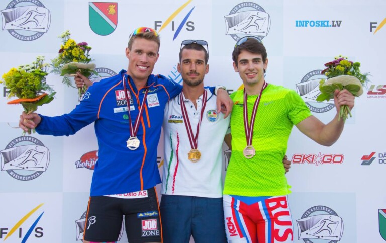 Bildergalerie Rollski Weltcup Madona (Lettland) Die besten Sprinter bei den Herren mit dem Sieger Emanuele Becchis in der Mitte © Flavio Becchis 1 2 3 4 5 6 7 8 9 10 11 12 © Bilder 1 - 12: Flavio Becchis;