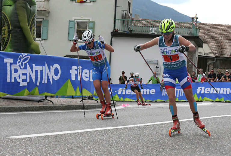 Bildergalerie Rollski WM Val di Fiemme Teamsprint Nikolaeva gegen Stürz © Newspower Canon 1 2 3 4 5 6 © Bilder 1 - 6: Newspower Canon;