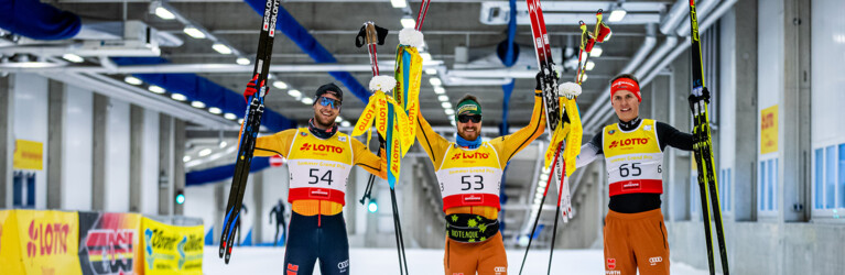 Bildergalerie Skihallensprint Oberhof Die Sieger des Skihallensprints 2021: v.l. Maxim Cervinka, Thomas Bing, Marius Kastner © DSV/Christian Heilwagen 1 2 3 4 5 6 7 8 9 10 11 12 13 14 15 © Bilder 1 - 15: DSV/Christian Heilwagen;