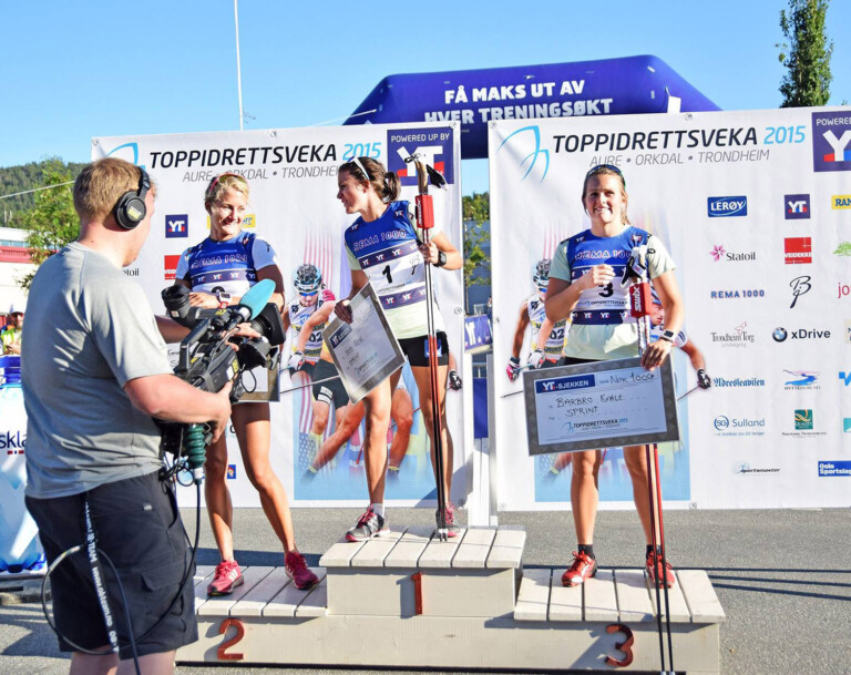 Bildergalerie Toppidrettsveka 2015 Sprint Die Siegerinnen: v.l. Katrine Harsem, Heidi Weng, Barbro Kvaale © Toppidrettsveka 1 2 3 4 5 © Bilder 1 - 2: Claes-Tommy Herland; Bilder 3 - 5: Toppidrettsveka;