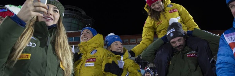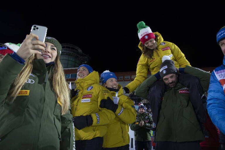 Die Italienerinnen während des Wettkampfs der Herren - Dorothea Wierer (ITA), Lisa Vittozzi (ITA), Federica Sanfilippo (ITA), Nicole Gontier (ITA), (l-r) © Manzoni/NordicFocus